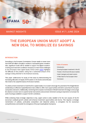 Today, EFAMA published the latest edition of its Market Insights series, titled “The EU Must Adopt a New Deal to Mobilize EU Savings”.