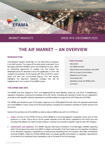 EFAMA has released today a new issue of its Market Insights (MI) series titled “The AIF market – an overview”.