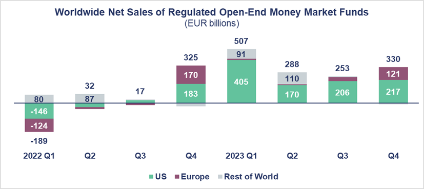- In the United States, MMFs continued to experience very strong net inflows (EUR 217 billion), up from EUR 206 billion in Q3 2023.